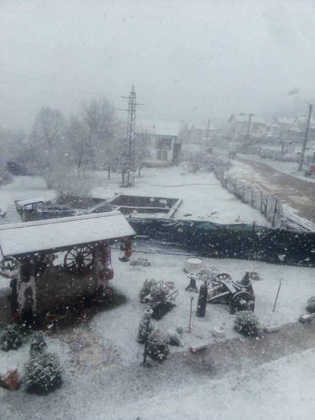 Сняг натрупа в Трън все едно е януари, а не април