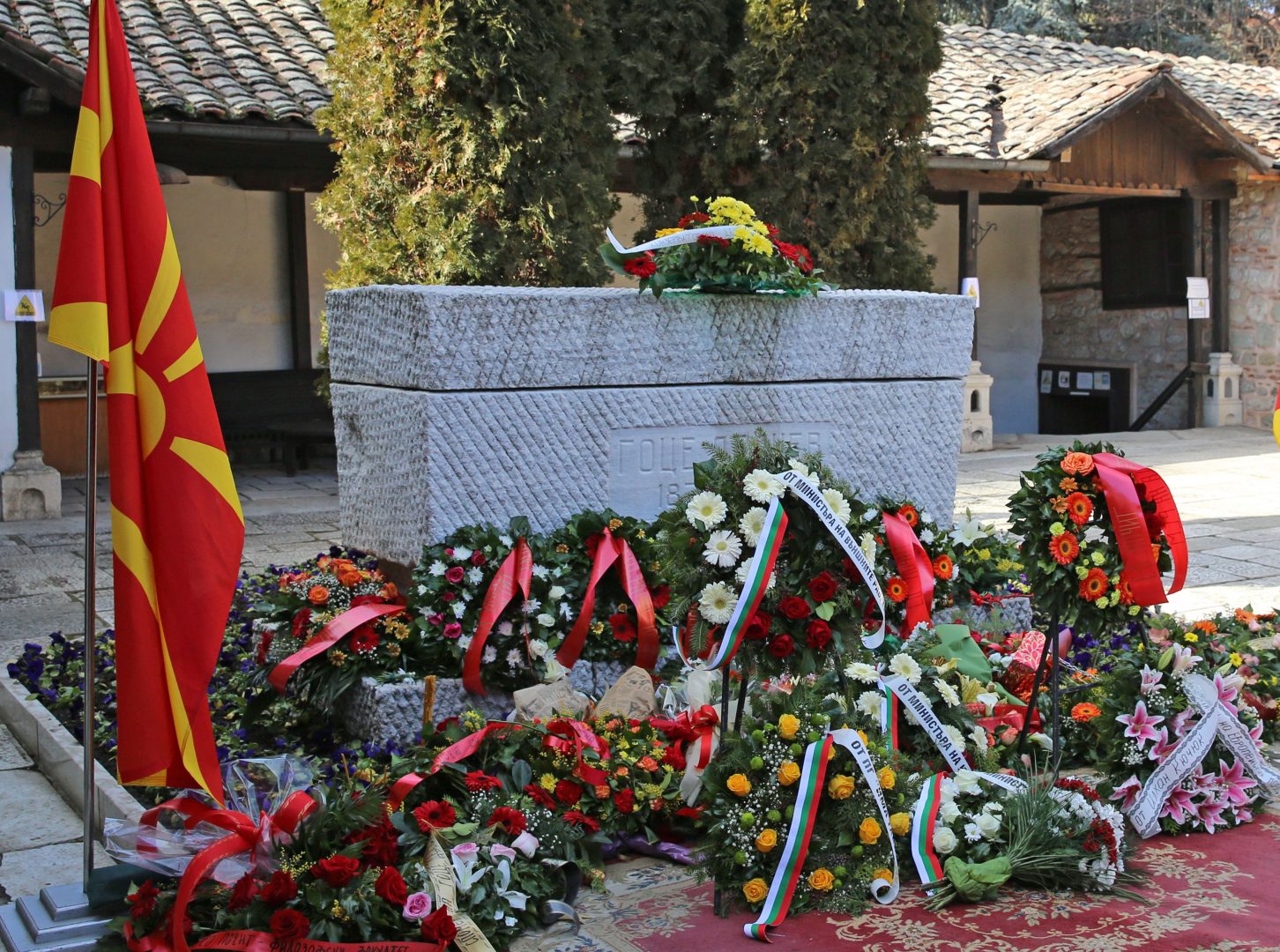 Вандали скъсаха лентите с българското знаме от венците на гроба на Гоце Делчев