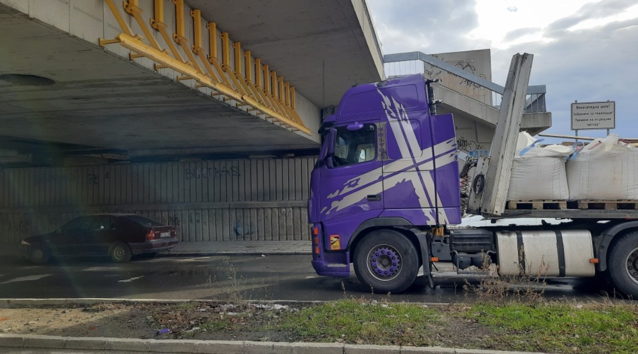 Това е пореден случай, когато водачи на тирове не преценяват височината на съоръжението