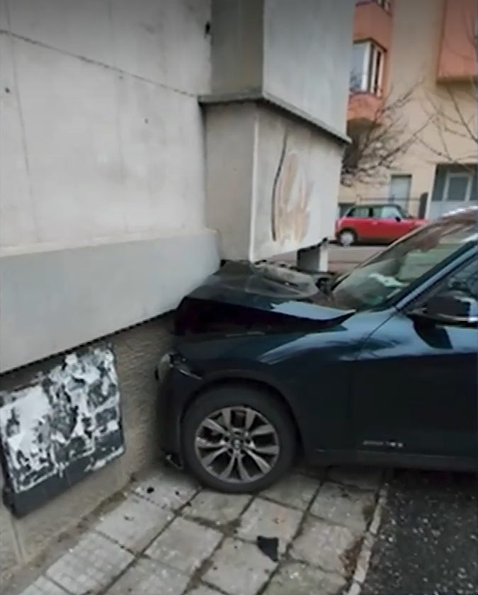 Кола се заби в балкона на жилищен блок в София