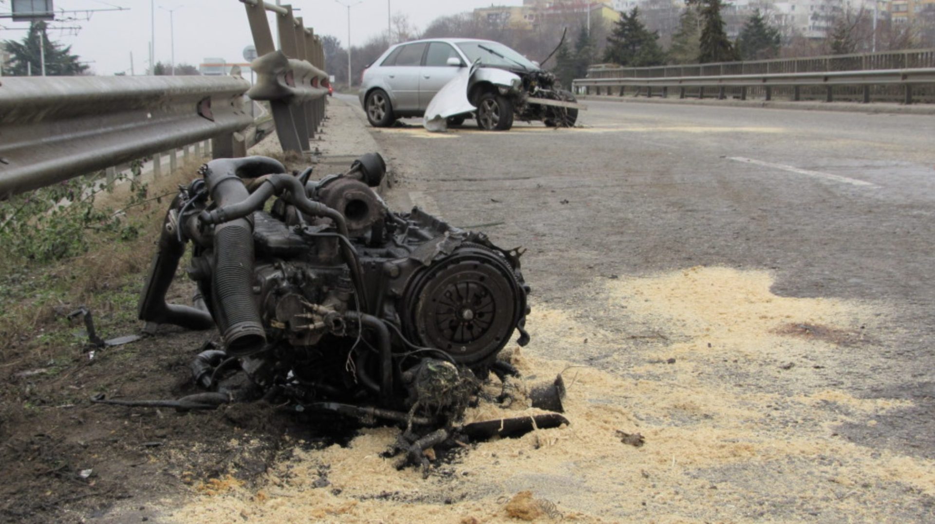 Младо момиче се удари в стълб в Русе, двигателят излетя на метри от возилото