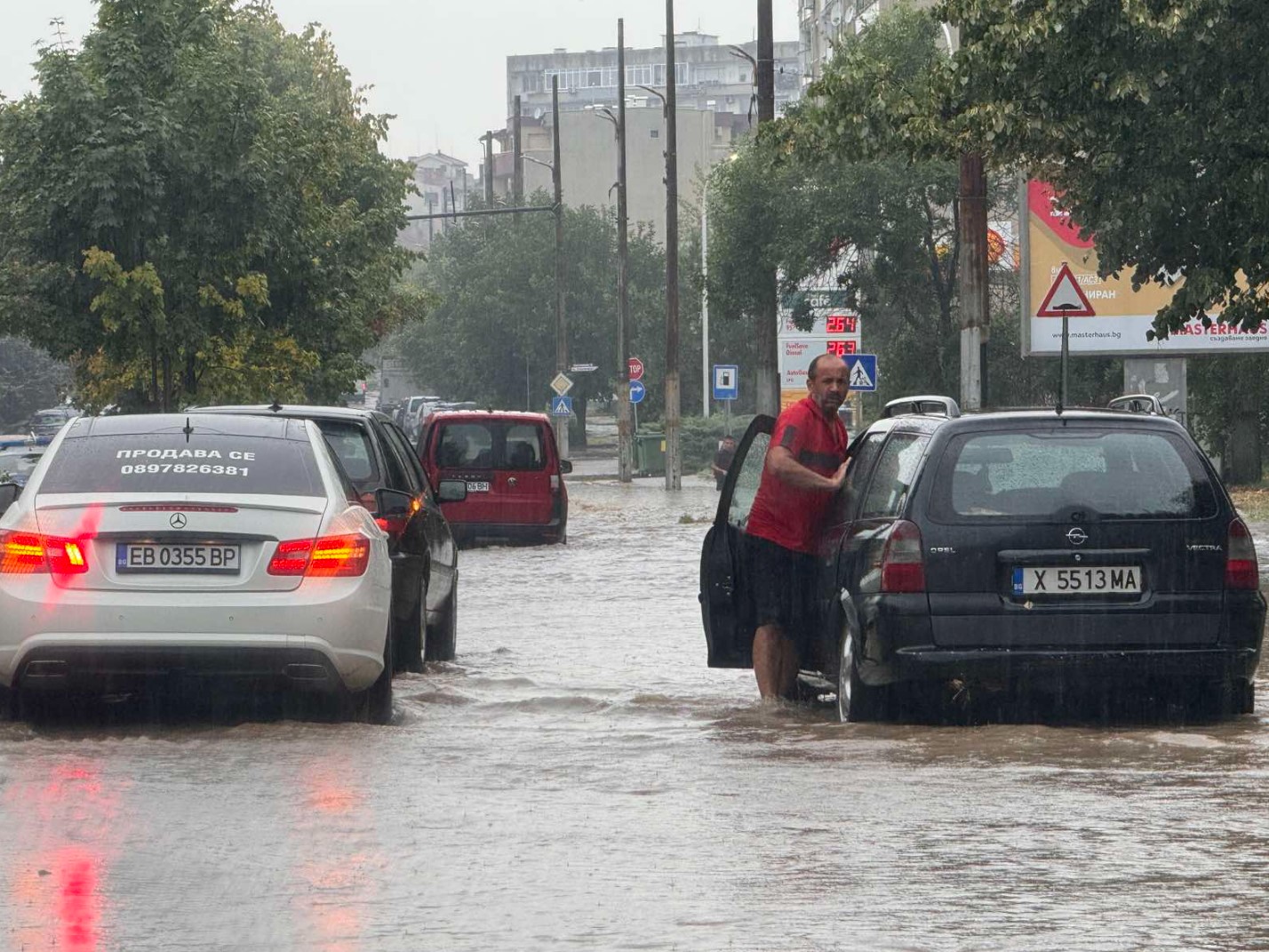 В Казанлък няколко коли аварираха заради високото ниво на водата
