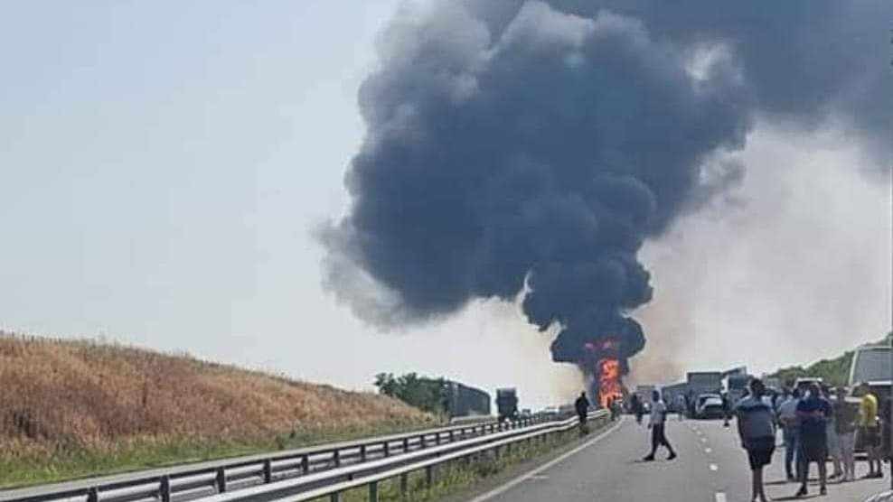 Камион гори на АМ "Тракия" при отбивката за Сливен