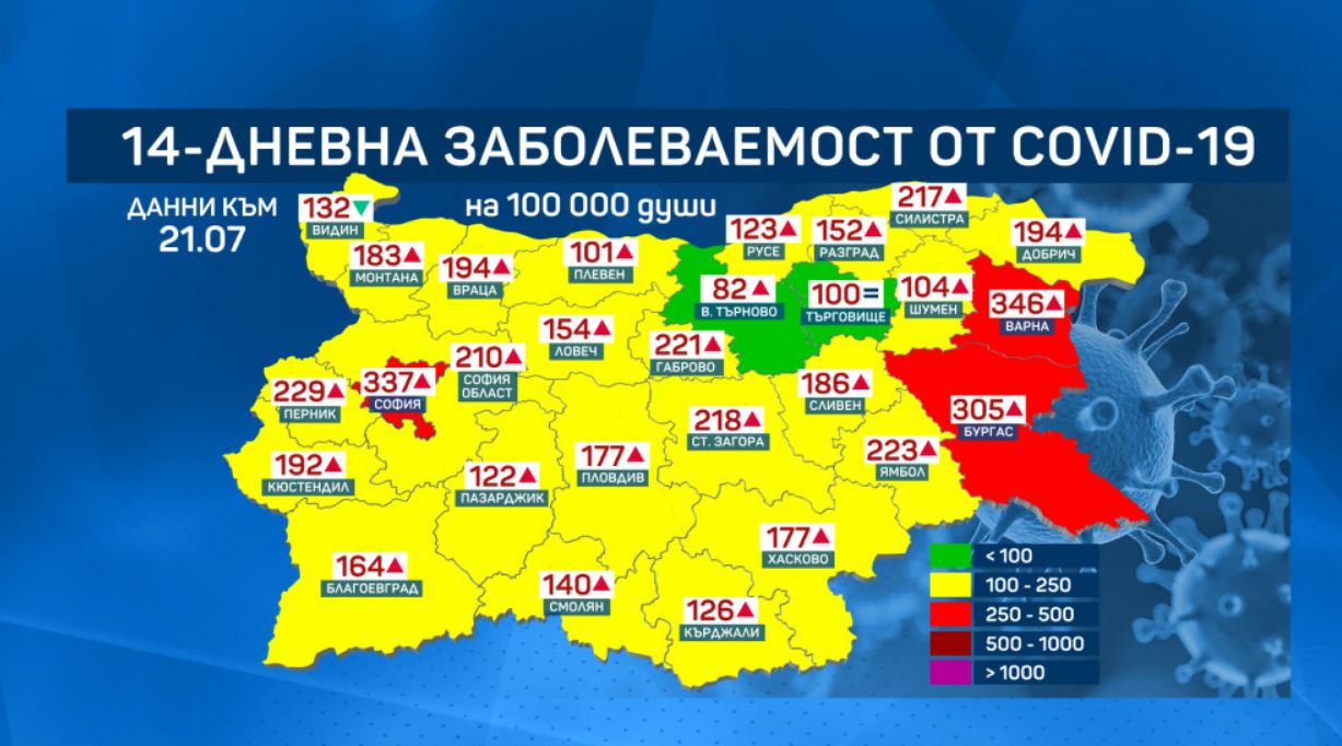 Още две области минават в жълтата зона по заболеваемост от COVID-19