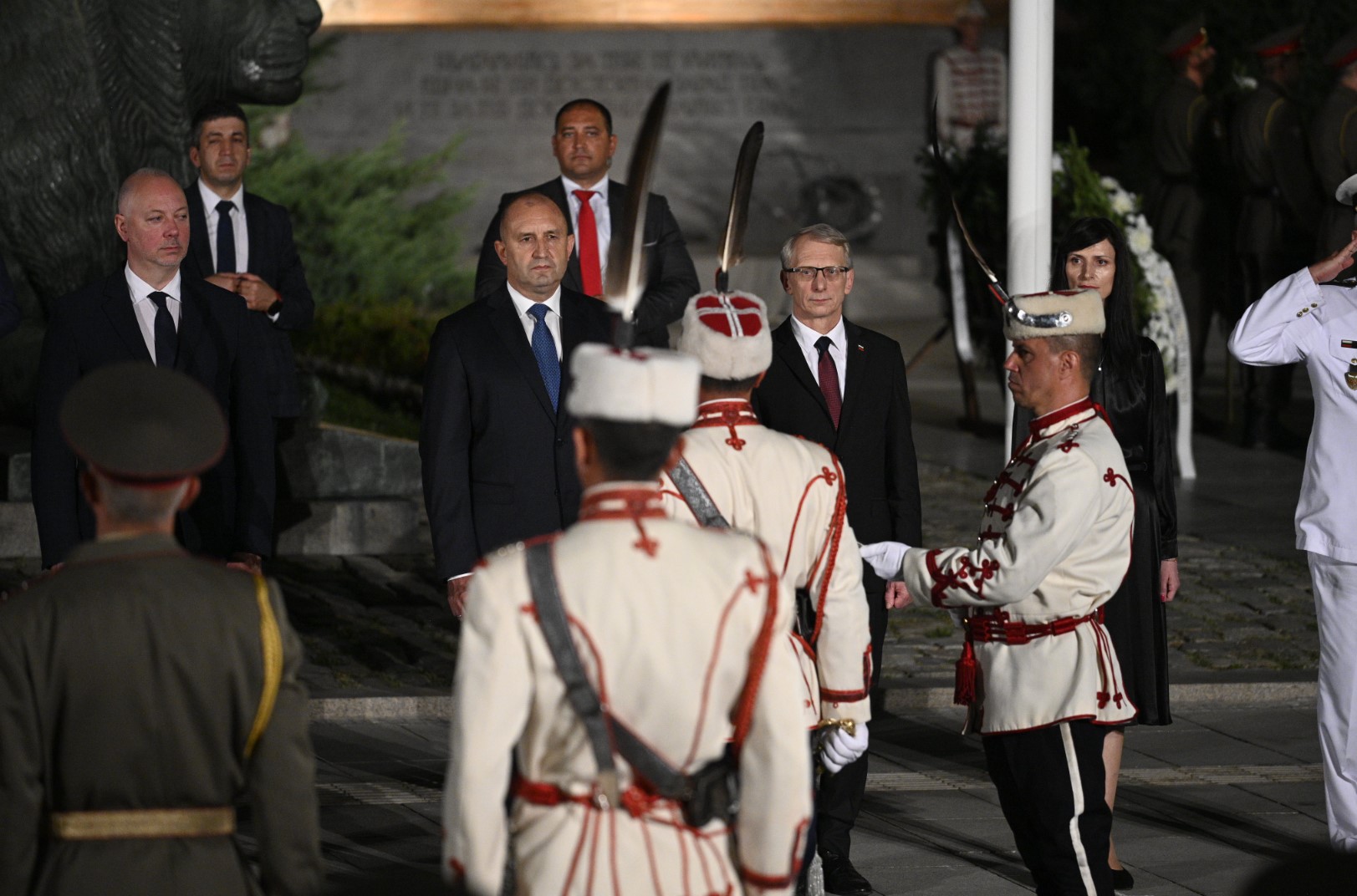 Ротите пред паметника на Незнайния войн бяха поздравени от президента Румен Радев, който също произнесе слово. От поколения на този площад се събират пътищата на националната памет на българската държавност и духовност. Тук отдаваме почит на безсмъртните имена и събития, които ни обединяват, каза президентът Румен Радев.