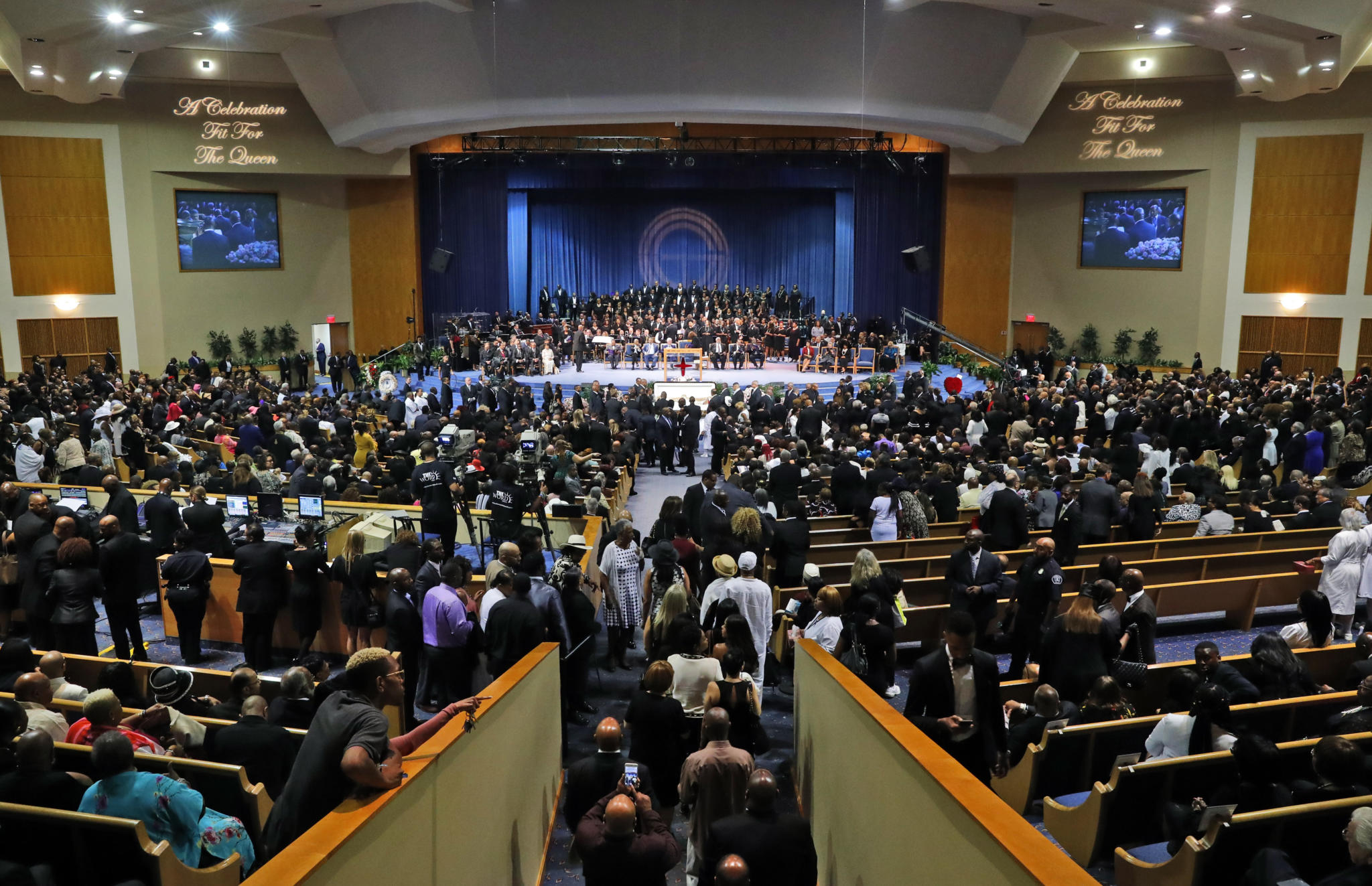 Знаменитости изпълниха храма за погребението на Арета Франклин в Детройт (СНИМКИ)