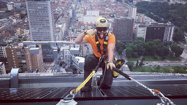 Българинът Димитър Харизанов е Човека паяк, който се катери по всички милански небостъргачи, за да ги чисти.