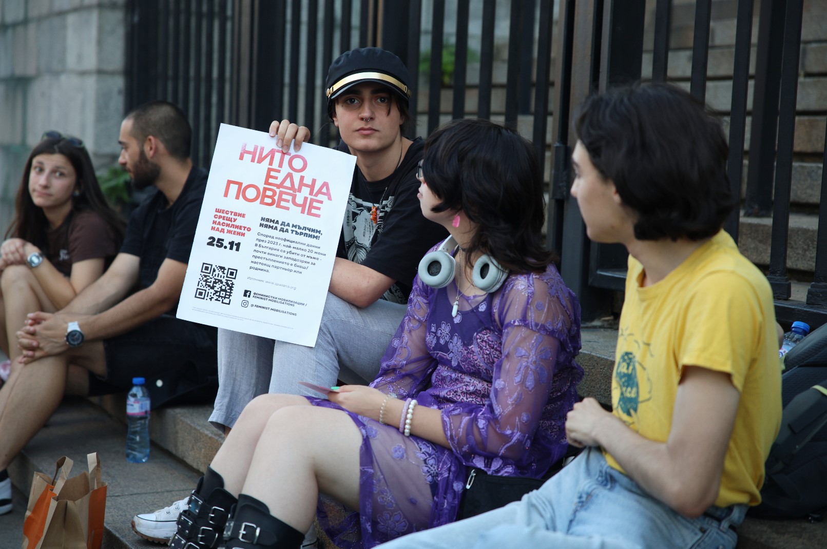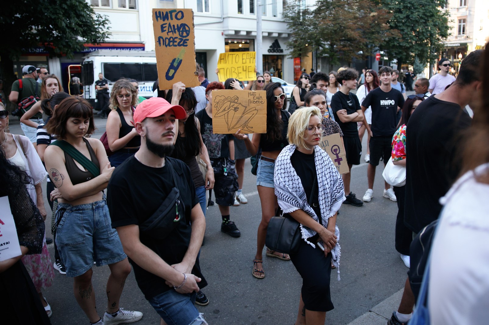 Пореден протест срещу насилието над жени пред Съдебната палата в София под мотото „Нито една повече“. Поводът – отново брутално насилие, този път над 56-годишна жена от Перник, която беше зверски пребита от 17-годишен младеж.