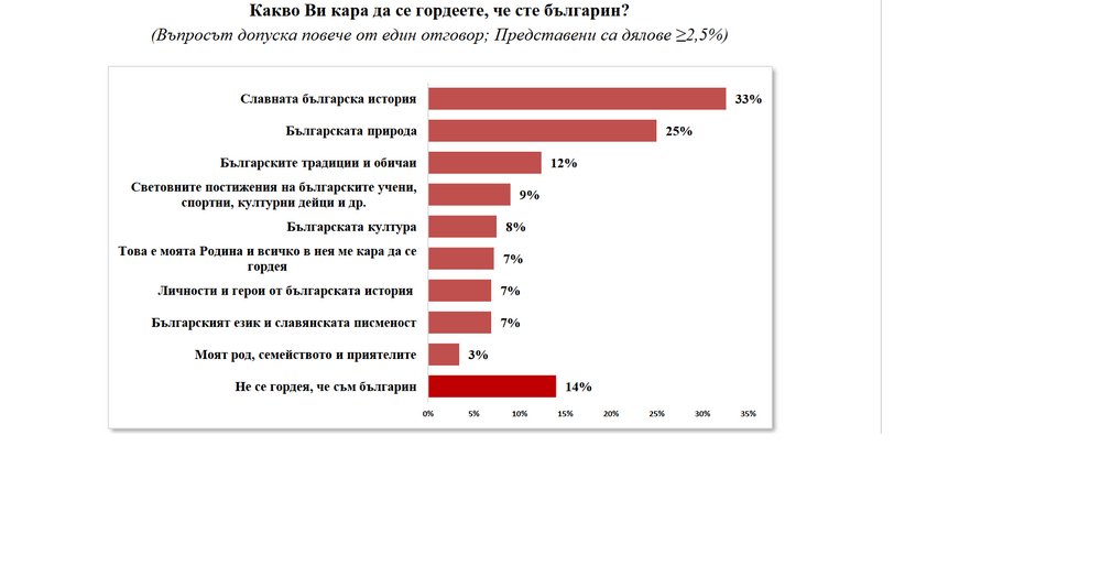 Нямат поводи да се срамуват от българския си произход 35% от пълнолетните български граждани.