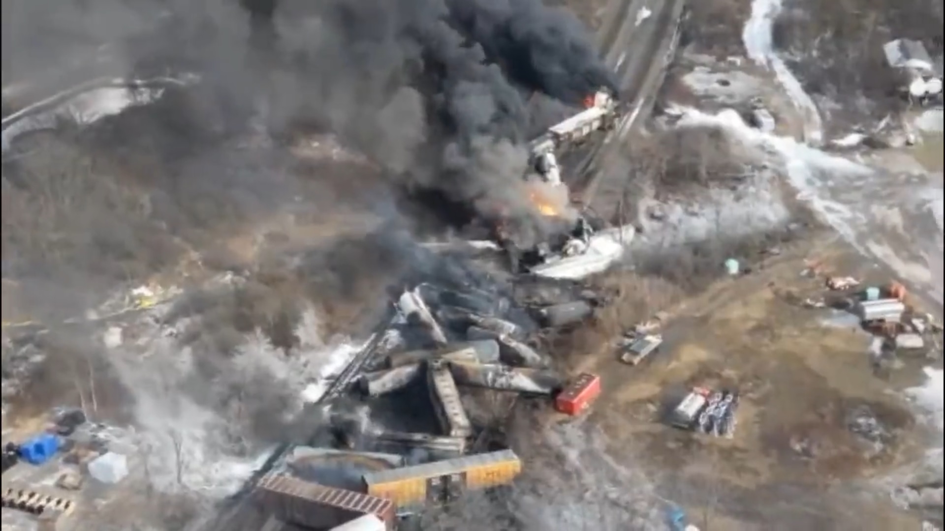 Пет от дерайлиралите вагони превозват винилхлорид – химикал, който в момента е нестабилен и може да експлодира