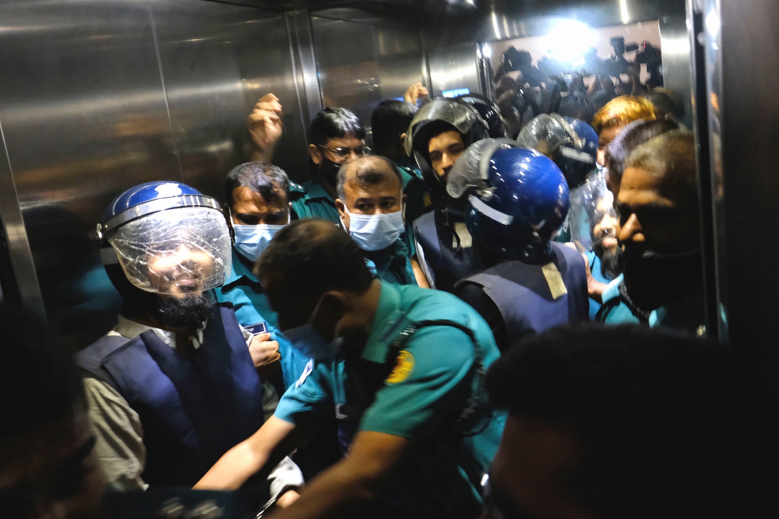 Четирима от подсъдимите се явиха в съда под строга охрана, а двама са все още на свобода
