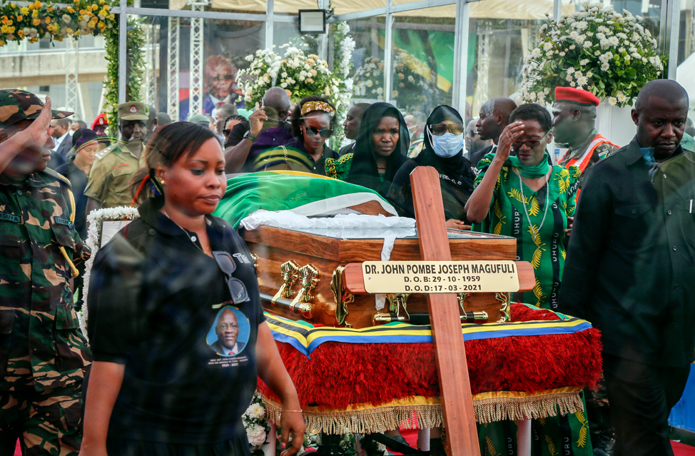 Ковчегът с тялото на лидера беше изложено през уикенда на стадиона Ухуру в град Дар ес Салам.