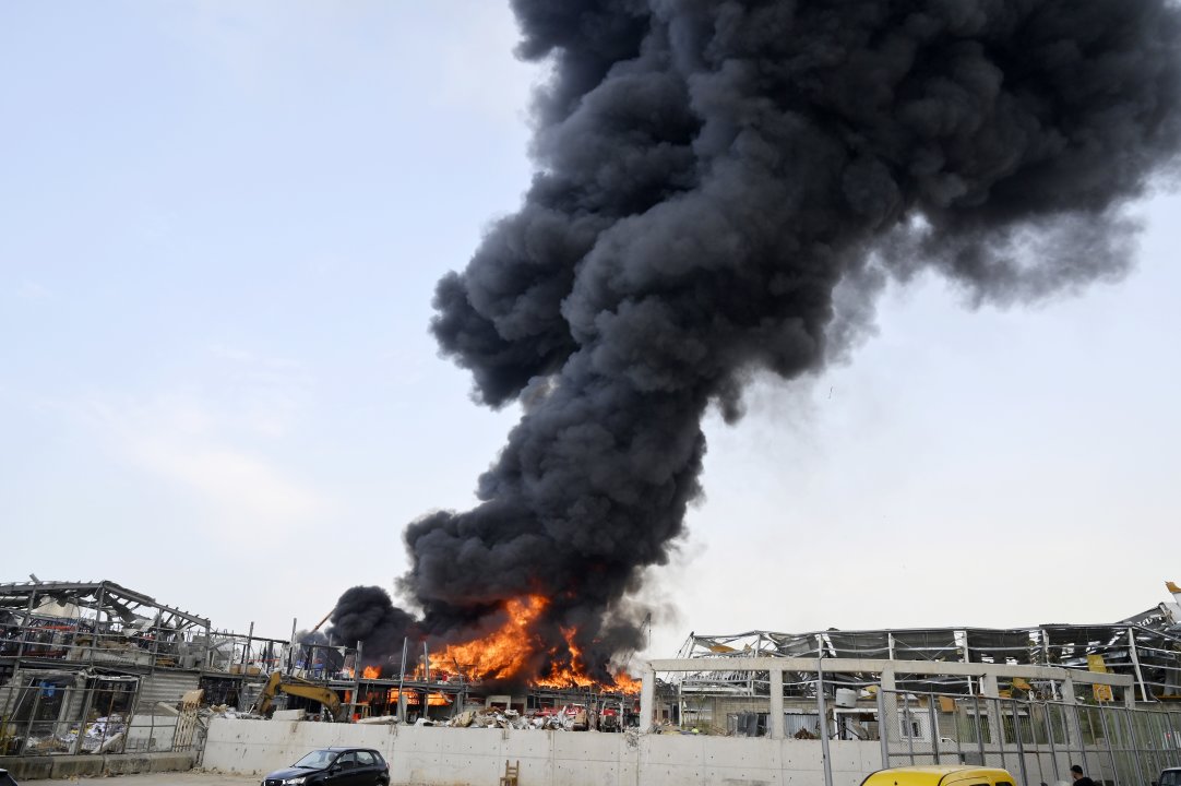 По предварителна информация на властите в Ливан гори склад за гуми, в който може и да има бидони с масло